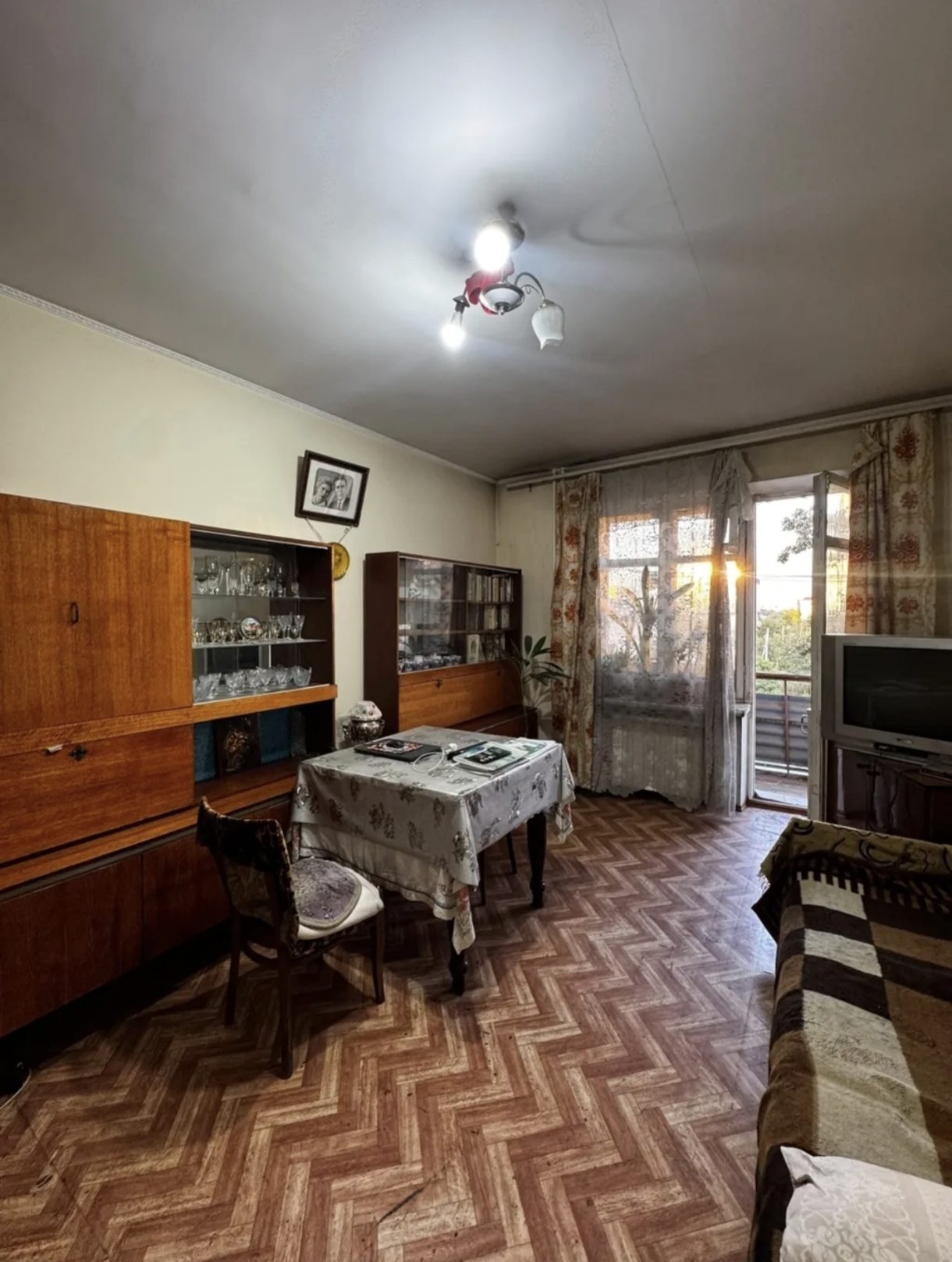 Описание: не угл, лодж заст по периметру, вход дв нов брон, ок пласт, с/у разд 100% стар каф, сан тех стар, кух раб ст каф+об, меж ком дв дер, ст поб покр, пол лин, пот п.я, ком не изолир, S=61,6()5,4 ост: встр меб ЧАКК!!! дв не ог, под с рем, жив кв-ты
