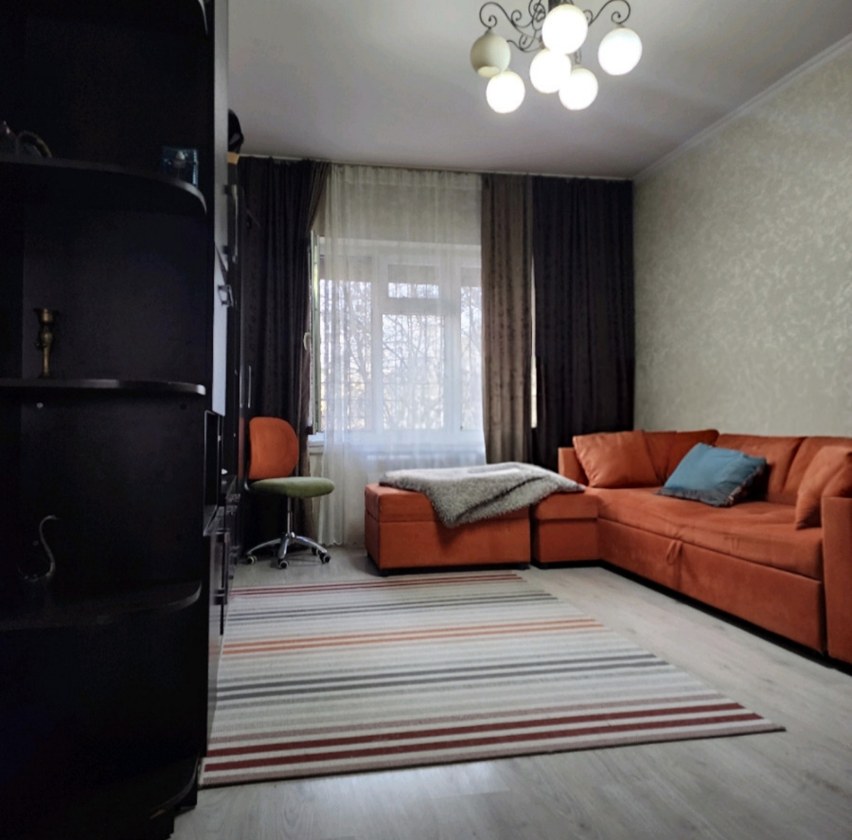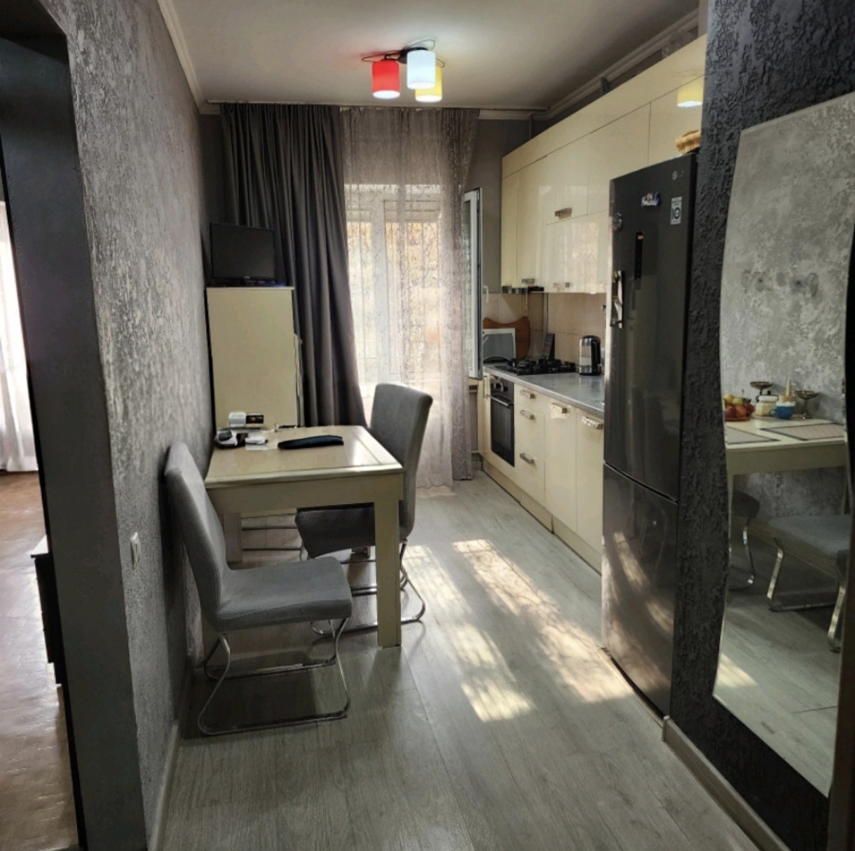 Описание: не угл,лод/зас+расш,нов.дв бр,окна пл+реш,с/у разд.100%нов.каф, ст-нов,кух раб.ст каф+обои,нов.м/к дв,в ком ст обои,пол/лам,потолки натяж.Хор Сост!!!Ост:вся меб. Двор не огор,подъезд с рем,жив-т хоз. есть перепл.-туалет перенесли в кладовку,расш. кухню.