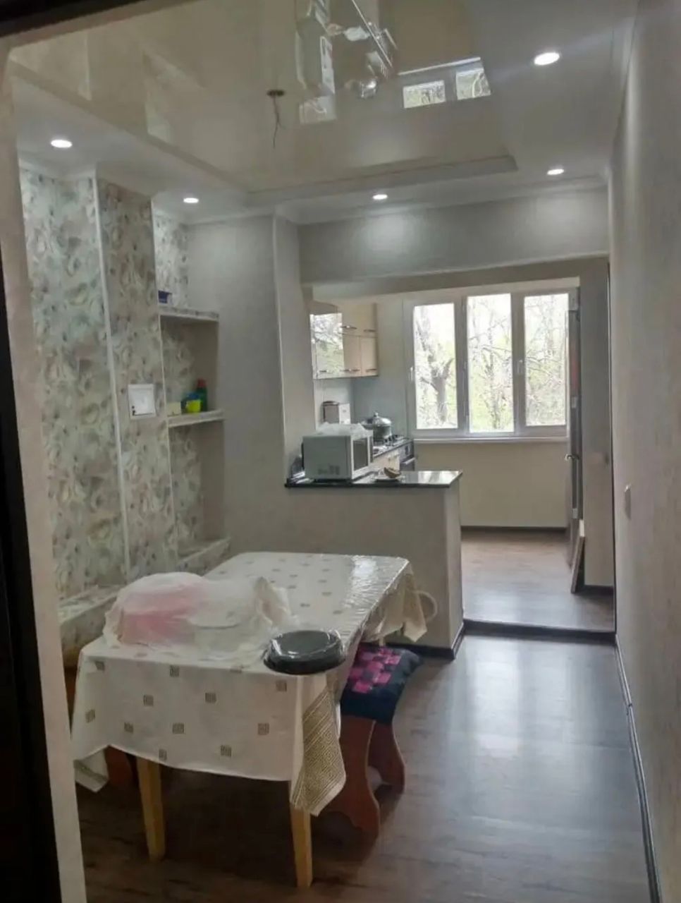 Описание: не угл, 2лод/зас+ут+расш, дв бр, окна пл, сан.узел разд.100%каф, ст-тр норм, кух расш.раб.ст каф+обои, межком.дв дер, в ком ст обои, пол/лин, потолки п.я, ком изол.S=52м.кв Хор Сост! Двор не огор, подъезд хор сост, жив-т хоз. есть гараж кирп.6х3 3000$ с ямой